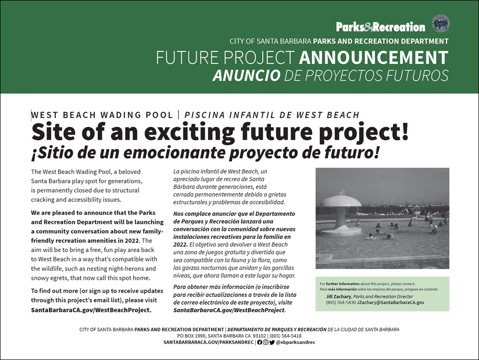 When we reached out to Jill Zachary, Director of Santa Barbara City Parks & Recreation Department in June 2021, Director Zachary explained that “a community discussion about the location will begin in 2022.” She further explained that the Department is not positioned to start that discussion until 2022 “due to funding and staffing limitations as well as other projects that are underway.”